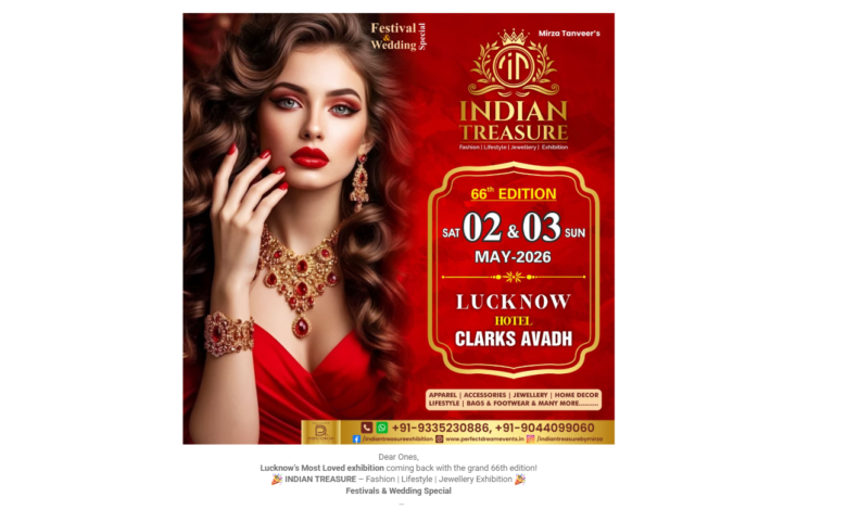 शहरवासियों के बीच लोकप्रिय ‘इंडियन ट्रेजर’ प्रदर्शनी एक बार फिर अपने 66वें संस्करण के साथ लौट रही है। यह फैशन, लाइफस्टाइल और ज्वेलरी पर आधारित विशेष प्रदर्शनी 2 और 3 मई 2026 (शनिवार-रविवार) को Hotel Clarks Avadh में आयोजित की जाएगी।