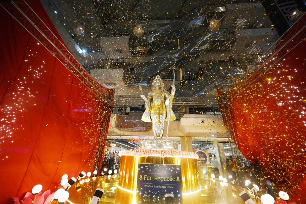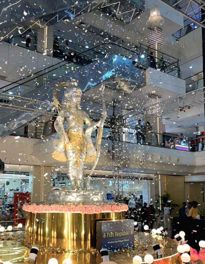 फन रिपब्लिक मॉल में डेढ़ लाख सिक्कों से बनी 18 फीट ऊँची भगवान श्री राम की भव्य प्रतिमा का अनावरण