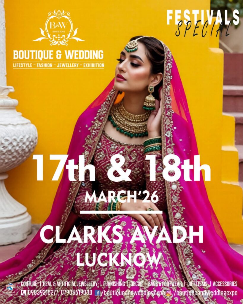 राजधानी में फैशन और वेडिंग सीजन की रौनक बढ़ाने के लिए 17 एवं 18 मार्च 2026 को ‘बुटीक एंड वेडिंग एग्जीबिशन’ का आयोजन किया जा रहा है। यह दो दिवसीय प्रदर्शनी शहर के प्रतिष्ठित होटल Clarks Avadh, Lucknow में आयोजित होगी, जहां लाइफस्टाइल, फैशन और ज्वेलरी से जुड़े नामी ब्रांड्स अपने नवीनतम कलेक्शन प्रस्तुत करेंगे।