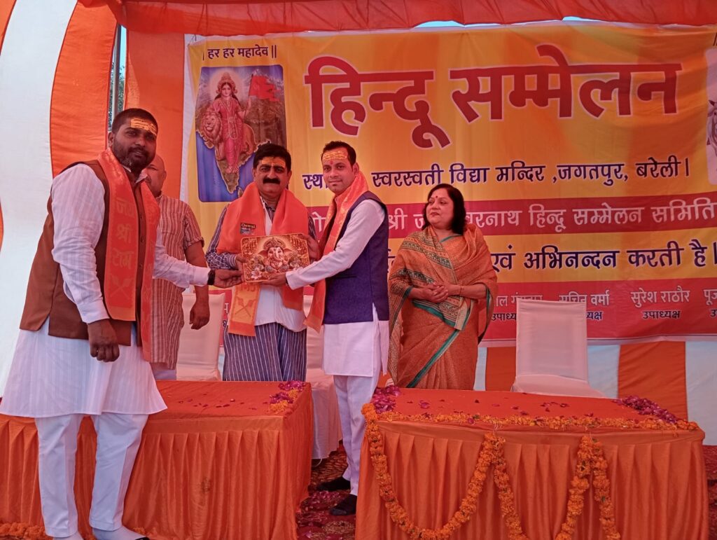 बरेली। जगतपुर स्थित सरस्वती विद्या मंदिर के प्रांगण में श्री जागेश्वर नाथ हिन्दू सम्मेलन समिति द्वारा आयोजित ‘भव्य विराट हिन्दू सम्मेलन’ हर्षोल्लास और गरिमामय वातावरण में संपन्न हुआ। कार्यक्रम के दौरान पूरा परिसर भगवा रंग और जयघोष से गुंजायमान रहा। संतों का सानिध्य एवं नन्हे बच्चों की सांस्कृतिक प्रस्तुतियां मुख्य आकर्षण रहीं।