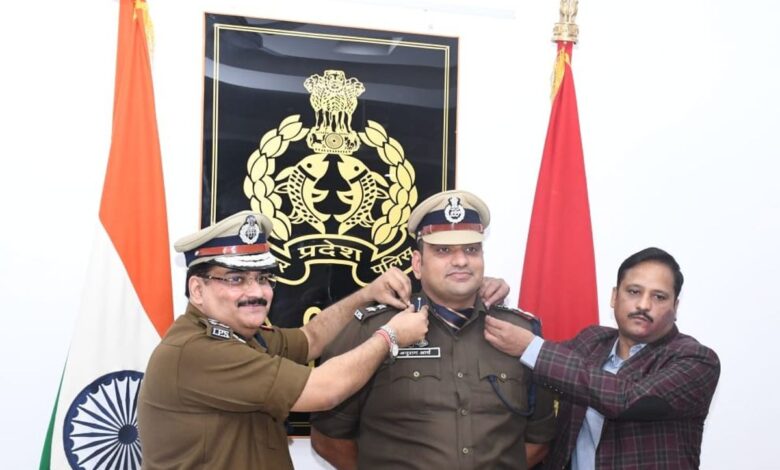 एडीजी-डीआईजी ने लगाए एसएसपी अनुराग आर्य को प्रतीक चिह्न, चयन ग्रेड पदोन्नति पर सम्मान