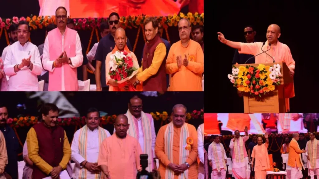लखनऊ में अम्बेडकर महासभा: सीएम योगी और डिप्टी सीएम पहुंचे, संविदा व सफाई कर्मियों के लिए न्यूनतम वेतन का ऐलान