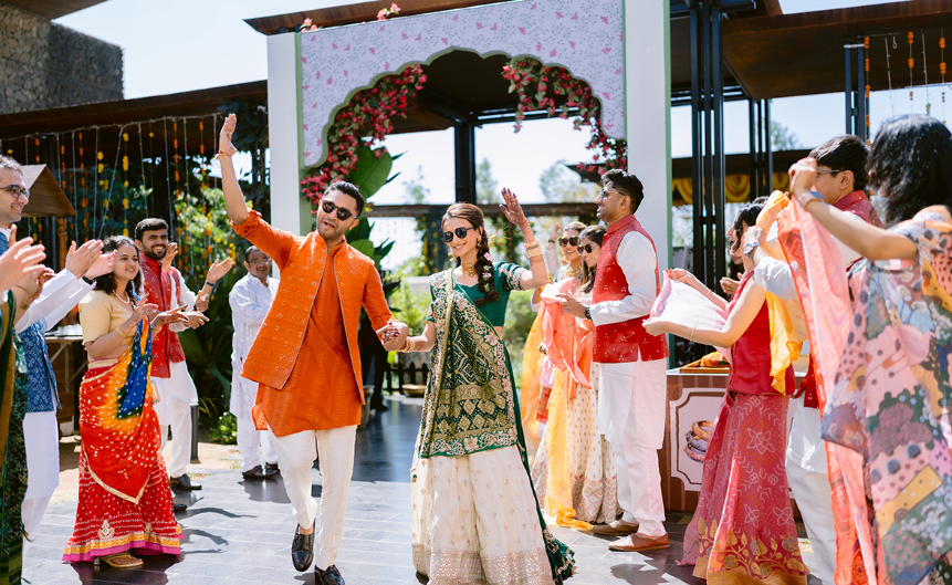 लोनावला के हरे-भरे पहाड़ों के बीच आयोजित धृति और मीत की शादी ने परंपरा और आधुनिकता का शानदार संगम पेश किया। शादी के सभी कार्यक्रमों में अलग-अलग थीम और कलर पैलेट्स ने इस समारोह को एक यादगार अनुभव बना दिया।