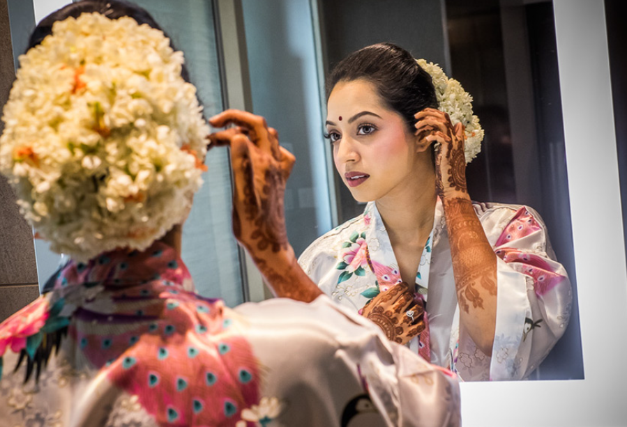 मोगरे के गजरे से सजा जूड़ा भारतीय परंपरा और आधुनिकता का खूबसूरत मेल है, जो हर दुल्हन पर जंचता है।