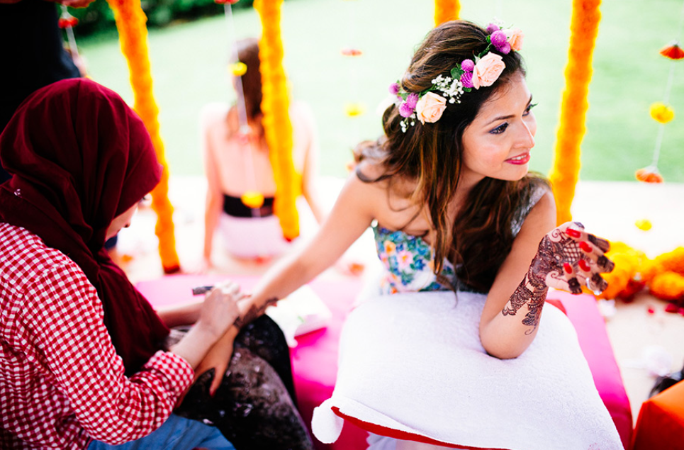 फ्लावर क्राउन या टियारा आजकल काफी ट्रेंड में है। डेज़ी, चमेली या गुलाब के फूलों से बना टियारा दुल्हन को एक परियों जैसा लुक देता है।