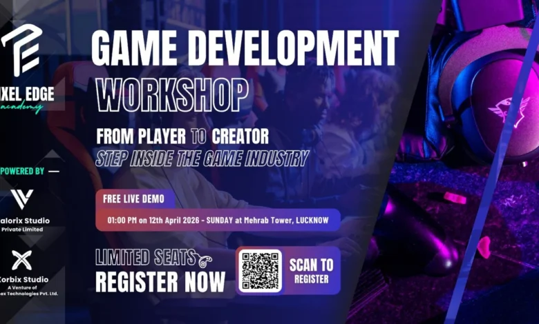लखनऊ के गोमती नगर स्थित Pixel Edge Academy द्वारा छात्रों के लिए एक विशेष फ्री गेम डेवलपमेंट वर्कशॉप (लाइव डेमो) का आयोजन किया जा रहा है। यह वर्कशॉप 12 अप्रैल (रविवार) को दोपहर 1:00 बजे से 3:00 बजे तक आयोजित होगी।