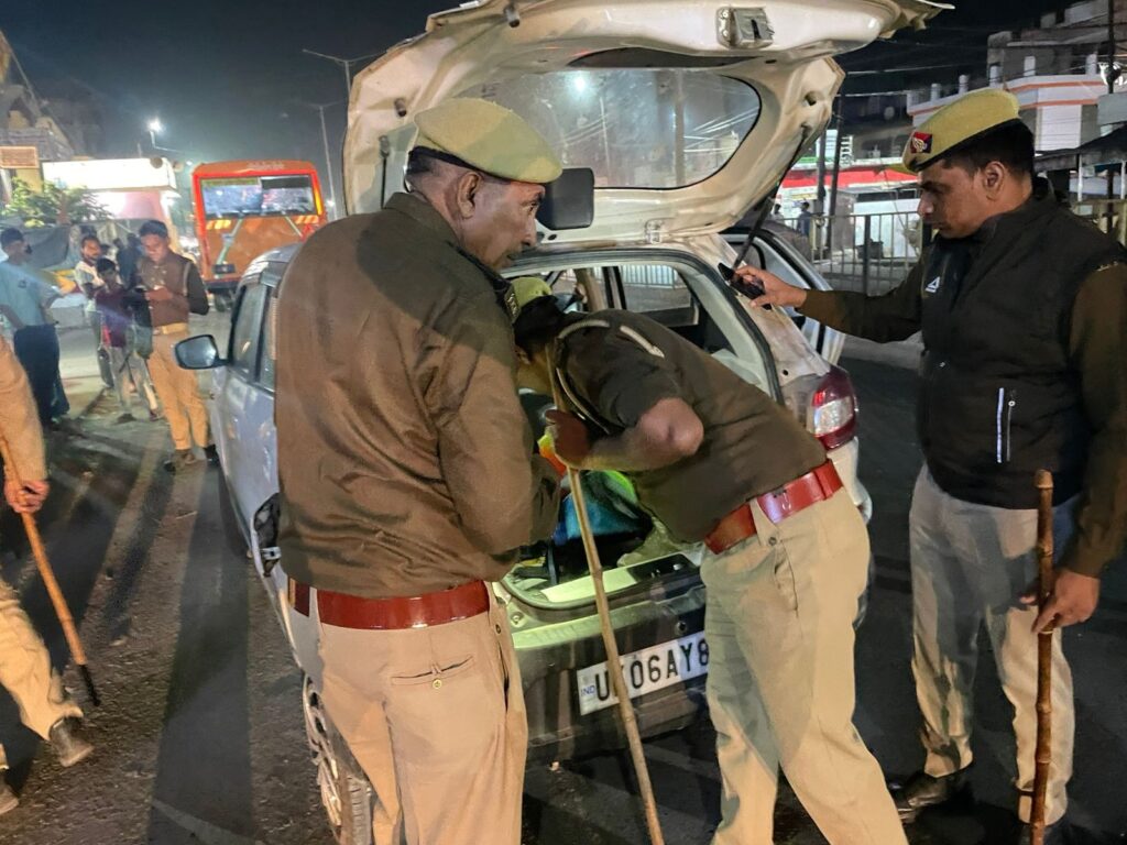 • हजरतगंज चौराहे पर वाहनों की जांच
