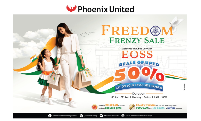 गणतंत्र दिवस के अवसर पर फीनिक्स यूनाइटेड, बरेली में ‘फ्रीडम फ्रेन्ज़ी सेल’ की शुरुआत की गई है। इस विशेष एंड ऑफ सीज़न सेल के तहत ग्राहकों को अपने पसंदीदा ब्रांड्स पर 50 प्रतिशत तक की आकर्षक छूट का लाभ मिल रहा है। यह सेल 10 जनवरी से 31 जनवरी तक चलेगी।