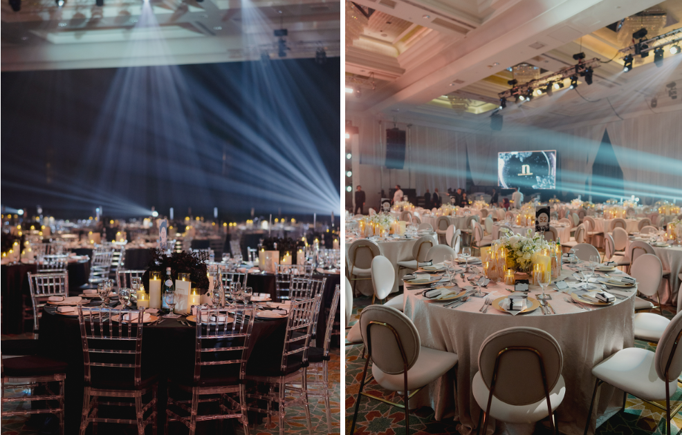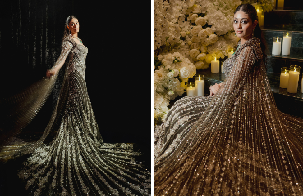 अगले दिन आयोजित रिसेप्शन डिनर ‘यिन और यांग’ की थीम पर आधारित रहा, जो दूल्हा-दुल्हन के संतुलित और पूरक व्यक्तित्व को दर्शाता है। ब्लैक, ग्रे और व्हाइट के साथ सिल्वर एक्सेंट्स ने इस आयोजन को क्लासी और लग्ज़री टच दिया।